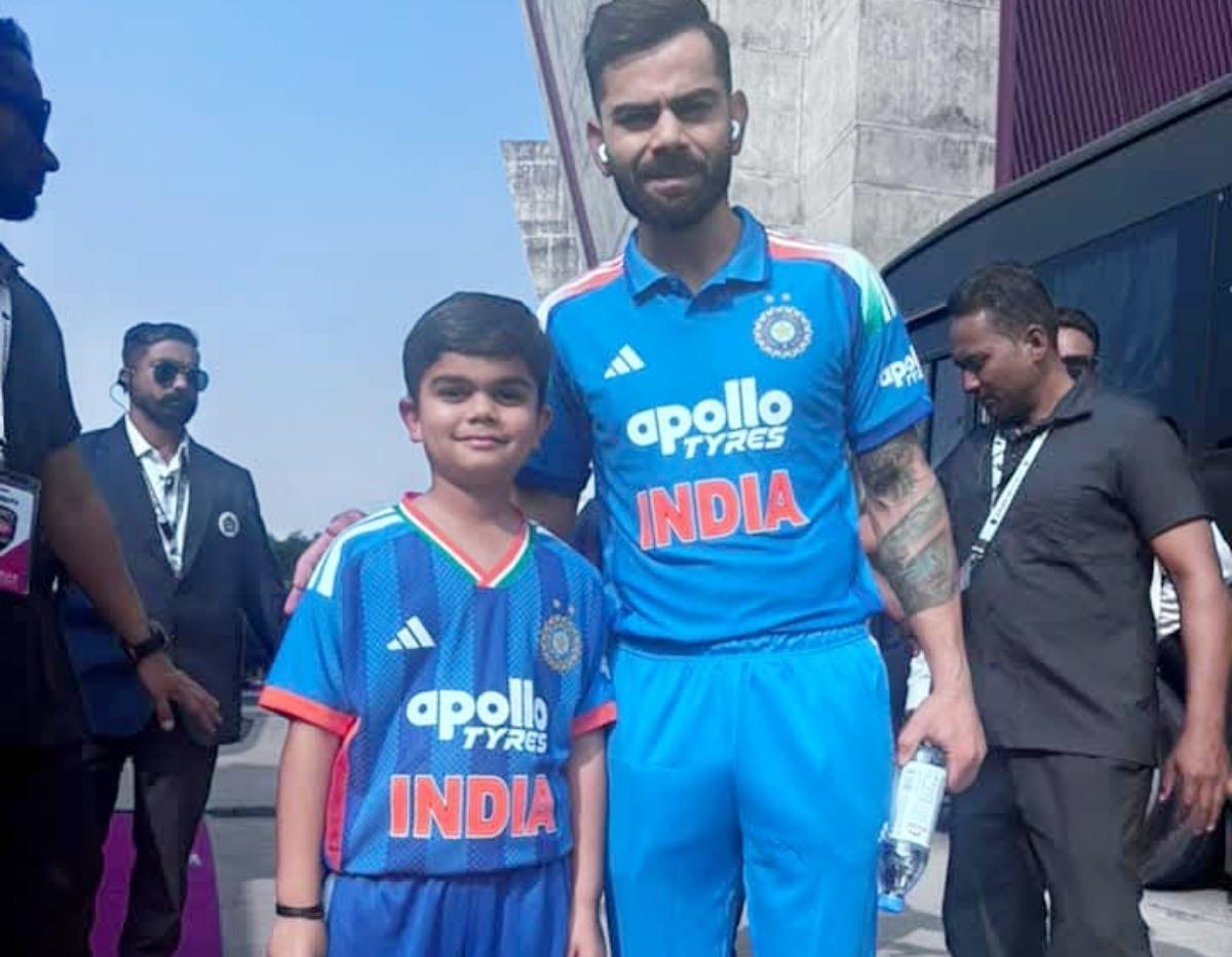 Virat Kohli recently shared a heartwarming moment with Garvit Uttam, a young fan who has gone viral for his uncanny resemblance to Kohli's childhood photographs.